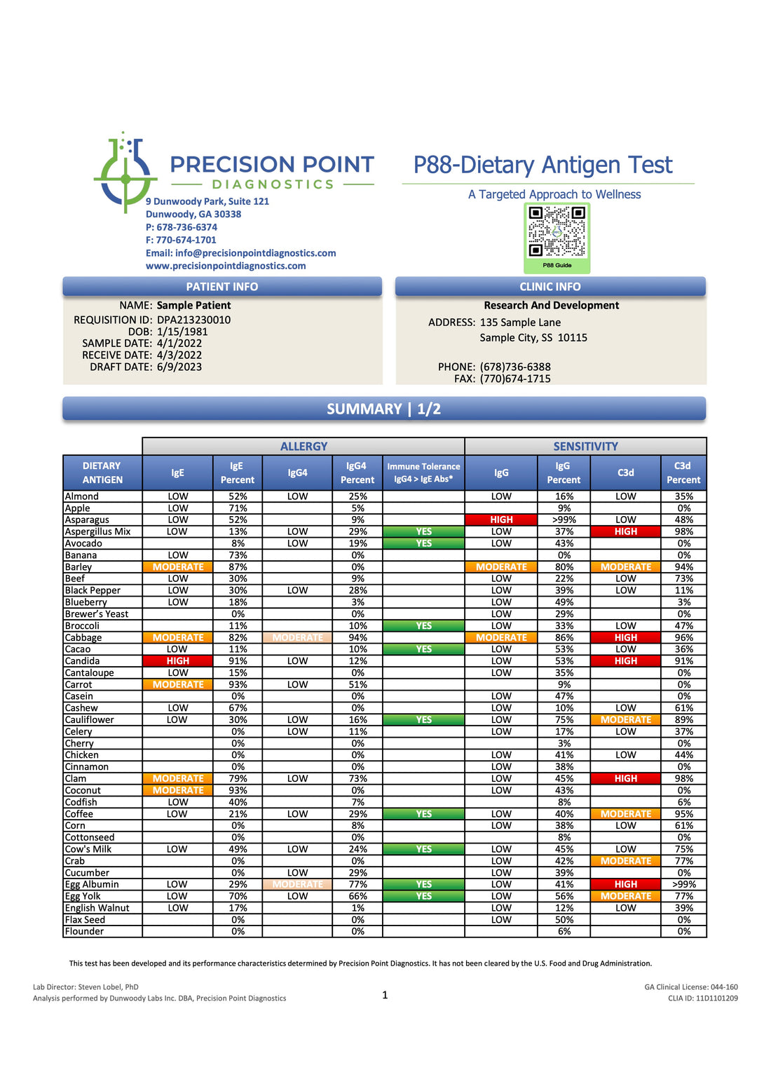 Food Allergy IgE & Sensitivity IgG Testing - 88 FOODS